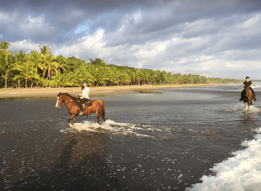 Crossing little rivers and riding where the jungle meets the ocean.